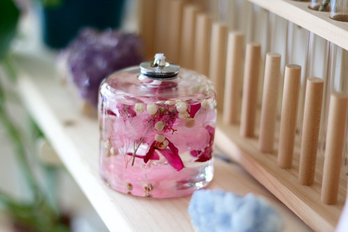 | お届けについて | ガラスボトルにお花がセットされた状態でお届けします。 ご使用の際は付属のキャンドルオイルをご自身で注入してください。 |
