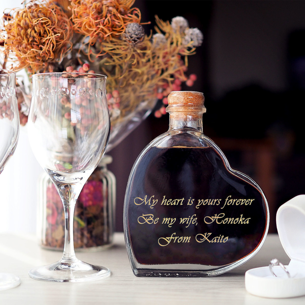 ビンの表面にはあなただけのメッセージを刻印できます。ハートの形のビンに乗せて届ければ、きっとあなたの想いも届いて喜ばれること間違いなしです。
