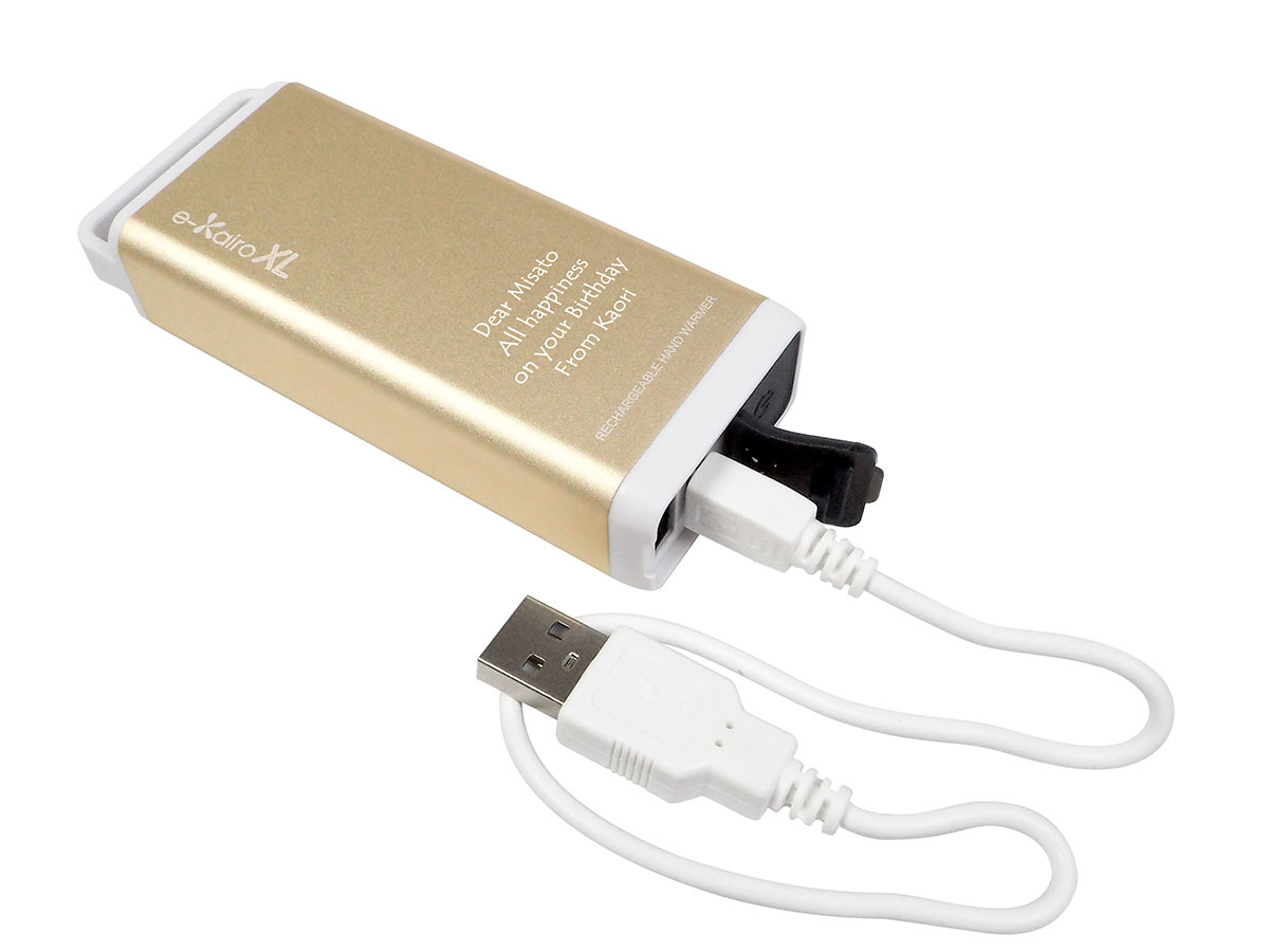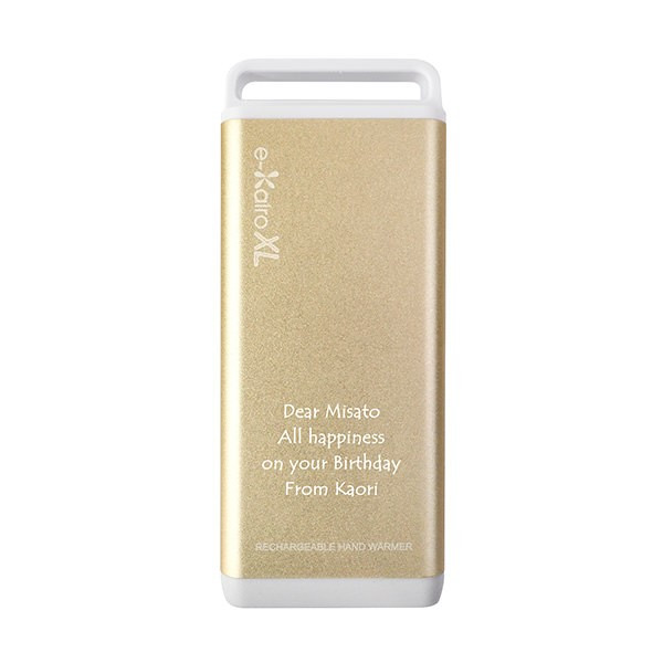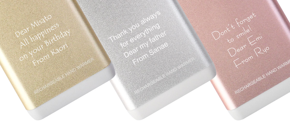 いつもはバッテリーチャージャーとして、寒いときは小型カイロとして、ずっと持ち歩きたい便利な必需品です。ご希望のメッセージを刻印すれば、とてもうれしい贈り物になります。ゴージャスな色味がポイントです。