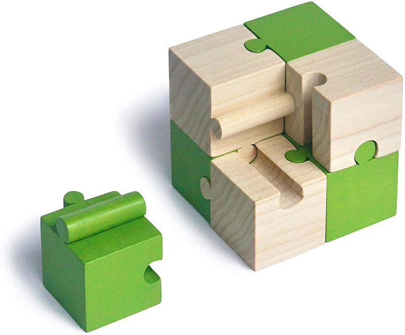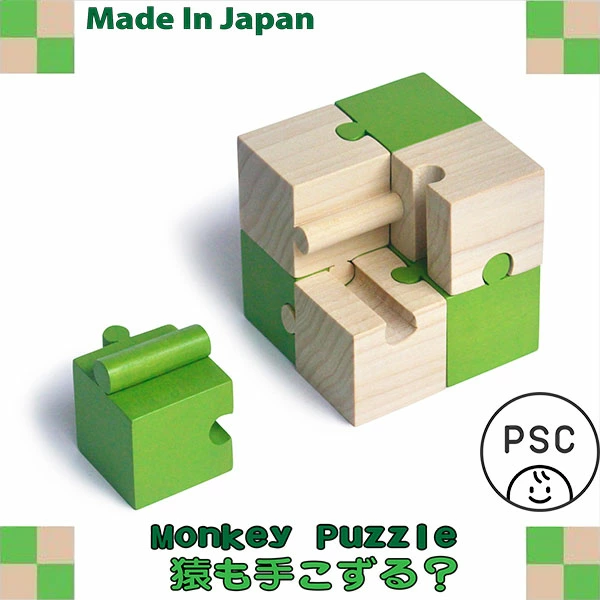 大口注文・法人のお問い合わせはこちら一辺6センチのピースを上手く組み合わせると、ツートーンの色合いが素敵な四角い箱に大変身します!ピースの1つ1つの木目が分かるように色を塗っているので、木目のつなぎ目を手がかりに、頭をフル回転させて挑めるやりがい抜群の立体パズルです。 パズルを作り上げる内に、優しい手触りの木のピースに、自然の温もりとパワーを感じる事でしょう。少しむずかしいパズルですが、五感を刺激されてハマる事間違いなし!お子さんお孫さんだけではなく大人の方々も、悩んで考えて楽しめますよ。