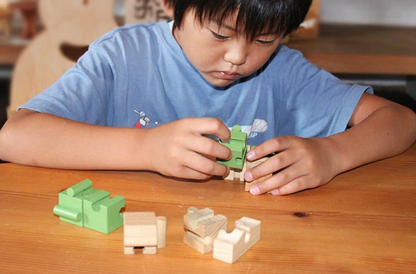 こちらのパズルは、1つの立方体の木材を切り出して作っています。ですので、正解の場所にはピッタリと気持ち良くはまります。 はまり辛い時は無理に押し込めず、木目をよく見た上で、別のピースに変えてみてください。 これが完成への大きな近道となります。