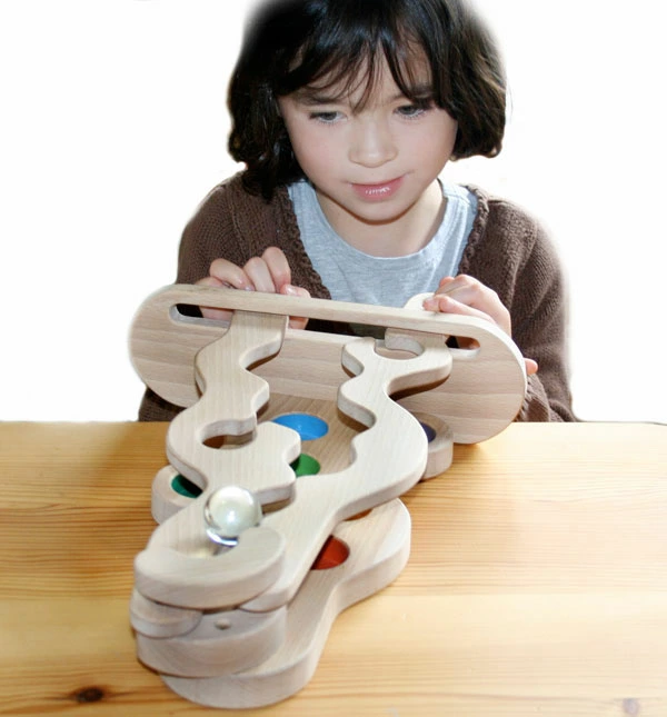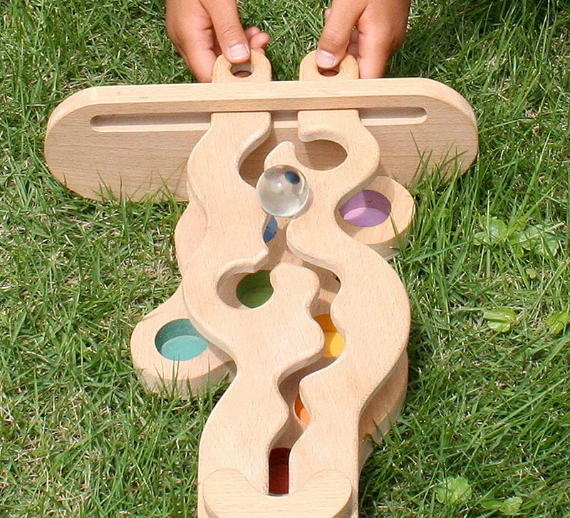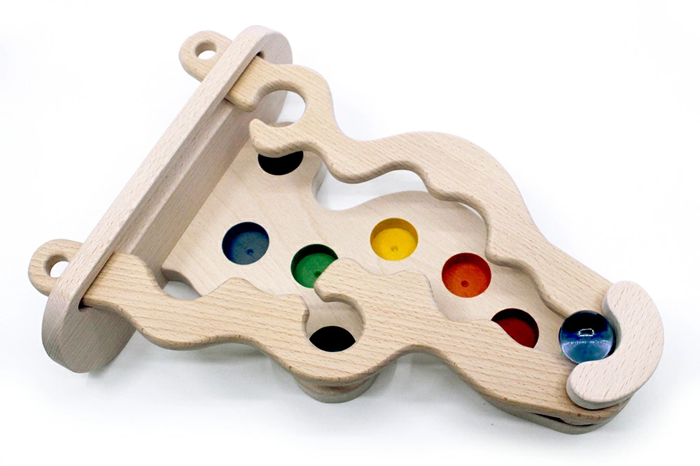 銀河工房の大人気商品「集中力アップゲーム」に、少し難しくなったビー玉バージョンが登場しました。このバージョンでは、ボールは大きなビー玉になって、落ちる穴にカラフルな色を付けています。ビー玉を落とさないように、集中力を高めて挑んでみてください。