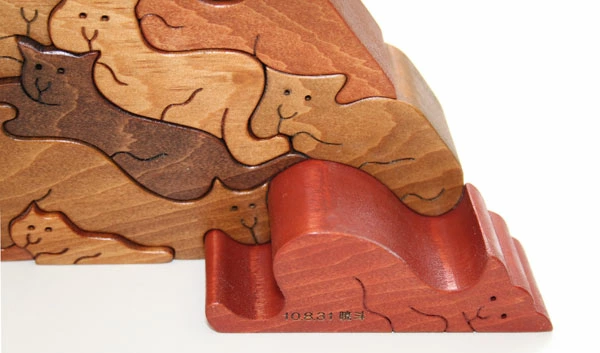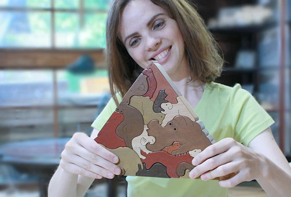 ブラウン系のカラーでまとめられた色や積み上げるとシンプルな三角形になるところ。 動物になっている各ピースの可愛くてユーモラスな表情が魅力的です。ちょっと贅沢なインテリアとして飾っておけるのもこのパズルの特徴です。