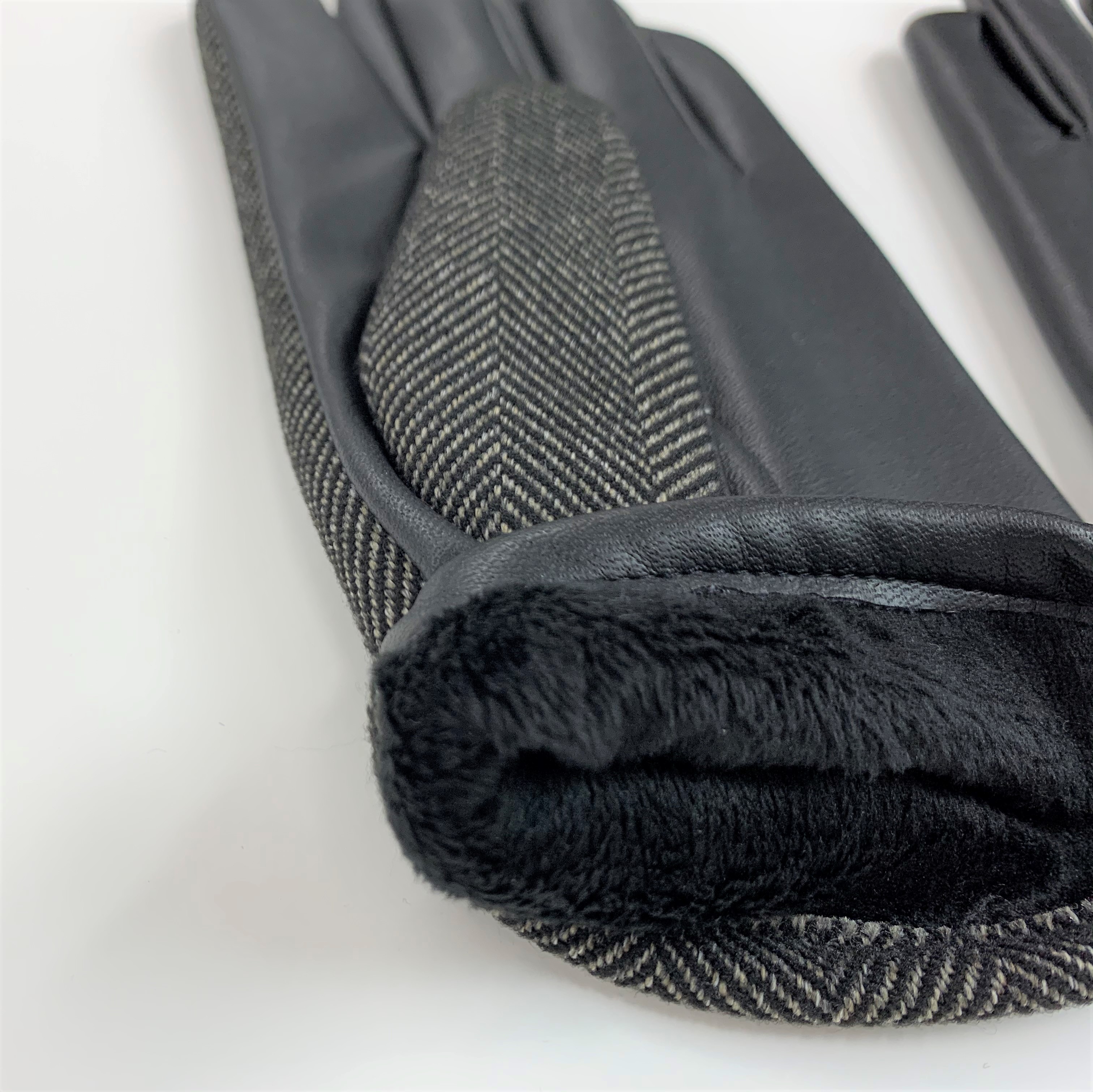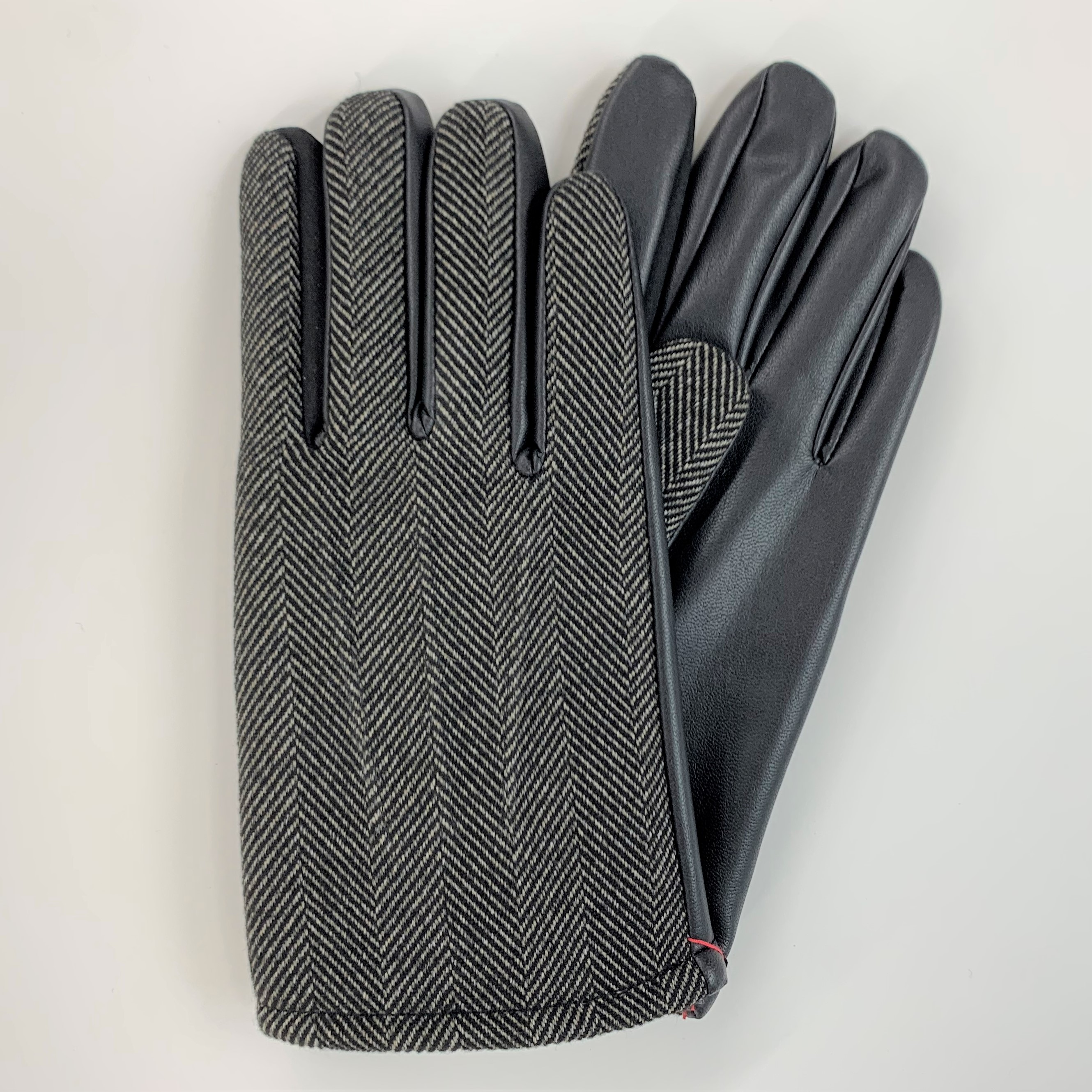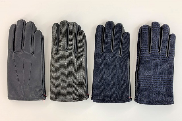 大口注文・法人のお問い合わせはこちらブラックカラーは全面合成皮革、他4色は甲部分に生地を使用した生地×合成皮革仕様です。 生地には、男性に好まれるヘリンボーン織りと、落ち着いたチェックをラインナップになっております。 人差し指側面にはタッチパネル対応の導電革を使用しており、 グローブをしたままのスマホ操作ができ、利便性も兼ね備えています。 上質で高機能なメンズグローブで秋冬の寒い時期を快適に過ごしてみませんか。