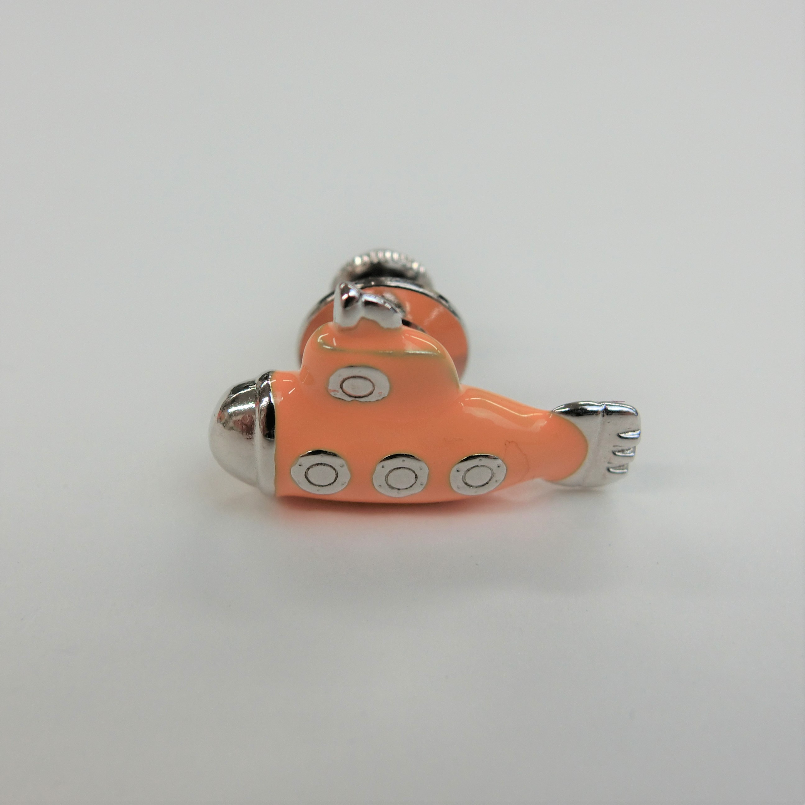大口注文・法人のお問い合わせはこちらポップでキュートな、イエローサブマリン(潜水艦)モチーフのピンズです。 シンプルなファッションにお付けいただくのはもちろん、気分に合わせてファッションのアクセントとして付けたいピンズです。