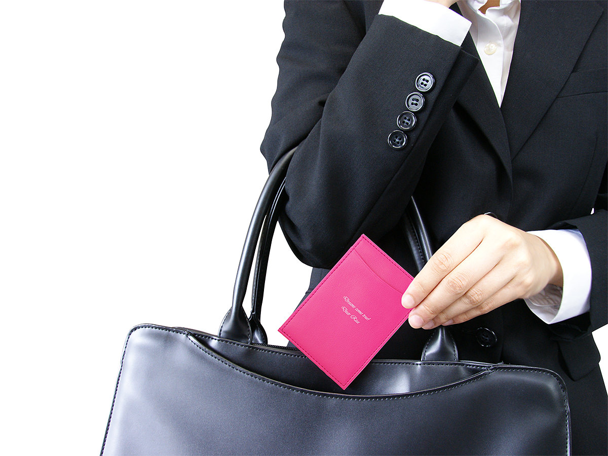 シンプルなパスケースです。定期入れはもちろん、ID カードや電子マネーなどのカードケースとしても使えます。