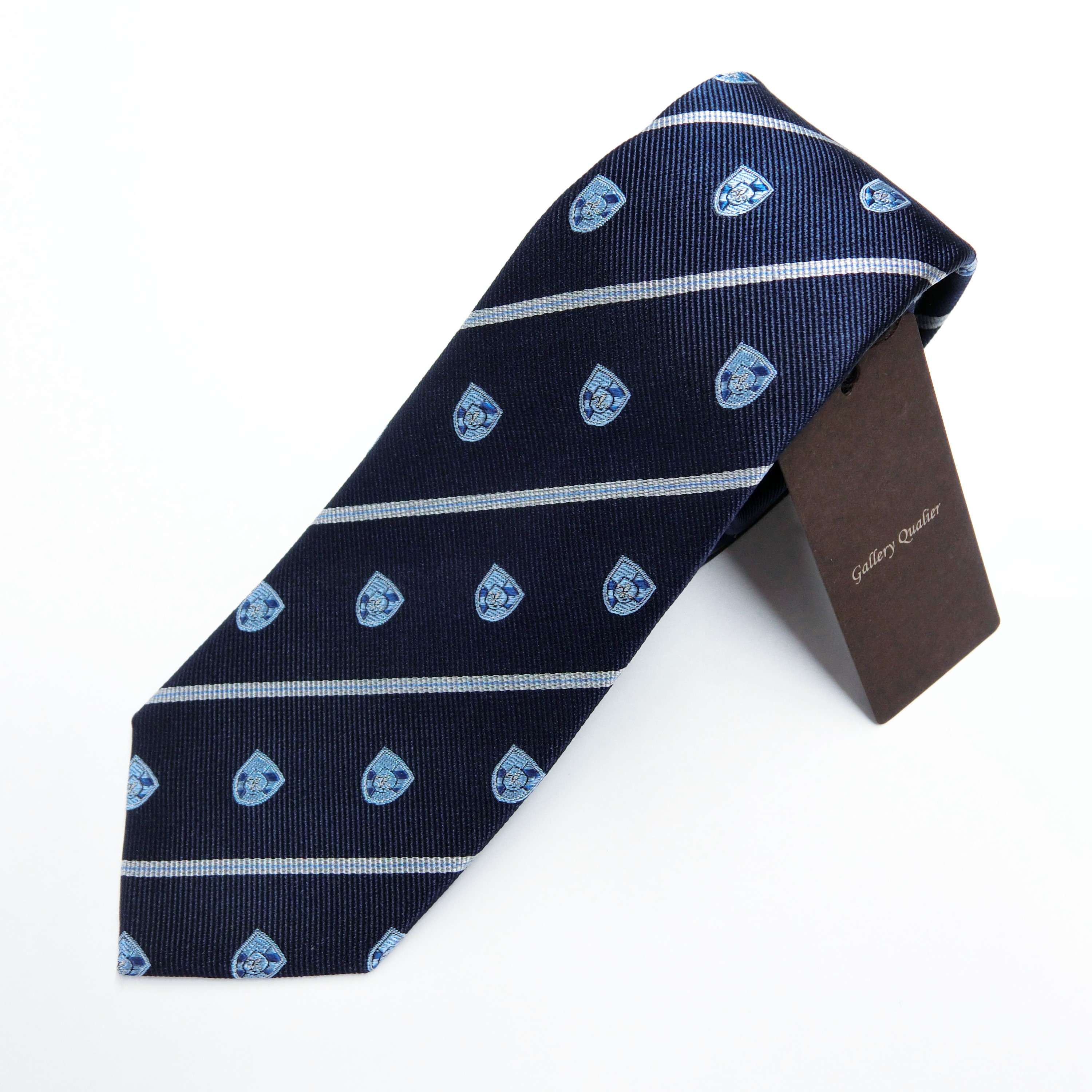 高いクオリティの商品を揃え、特別な一点に出会えるようなモノづくり・ラインナップを提供する【Gallary Qualier(ギャラリークオリエ)】のシルク100%使用のネクタイです。トラッド感あふれるクレスト柄は、スーツスタイルはもちろん、紺ブレ等とのコーディネートにも最適です。