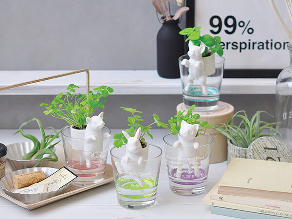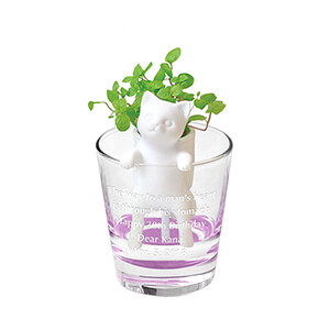 ポットで育てるグリーンの栽培キットです。グラスに水を溜めてポットをセットすれば準備完了。底面給水システムで爽やかな香りのハーブを育てることができます。可愛らしいアニマルのポットはお部屋の癒やしのインテリアにも。