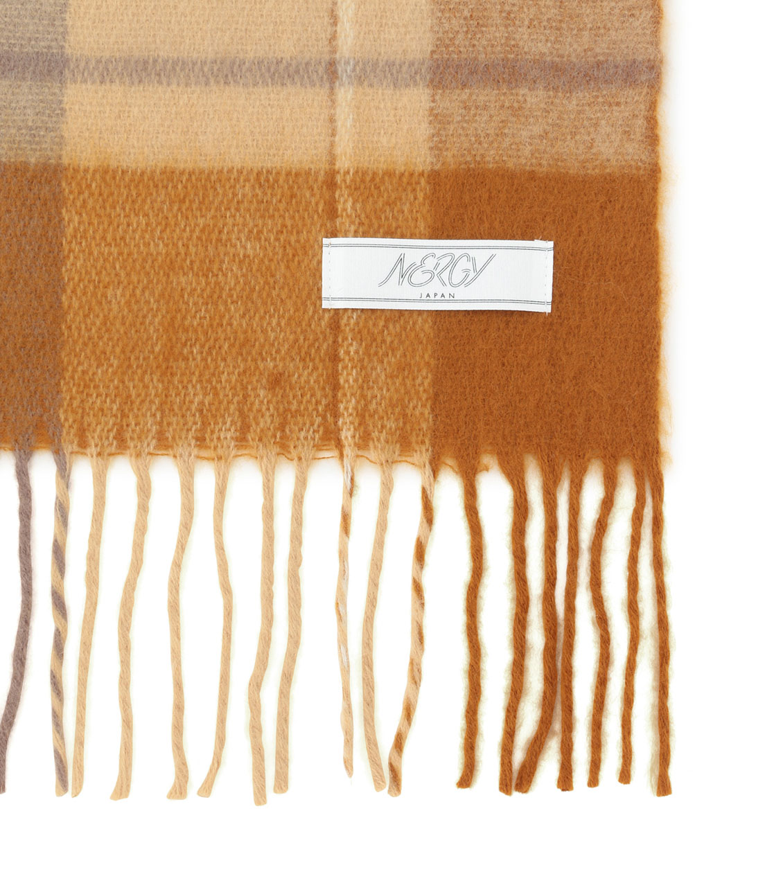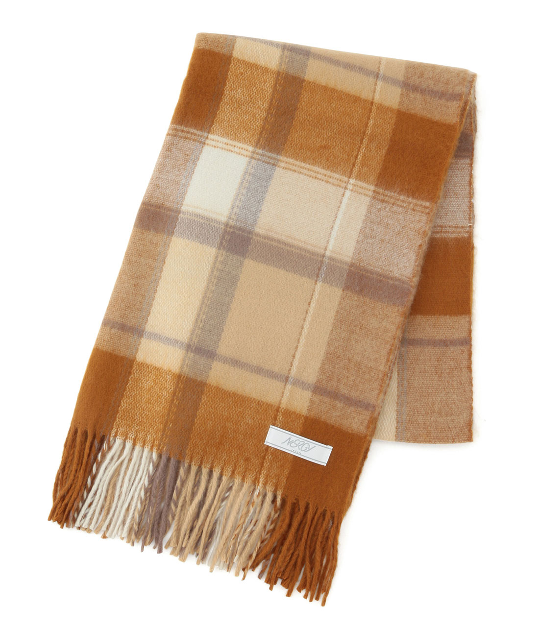 大口注文・法人のお問い合わせはこちらふんわり起毛が特徴のチェック柄で、上質なアクリルを使用しています。 とても柔らかい肌触りが特徴です。オレンジとブラウンの鮮やかなカラーが印象的です。 シンプルなファッションのアクセントにもなります。