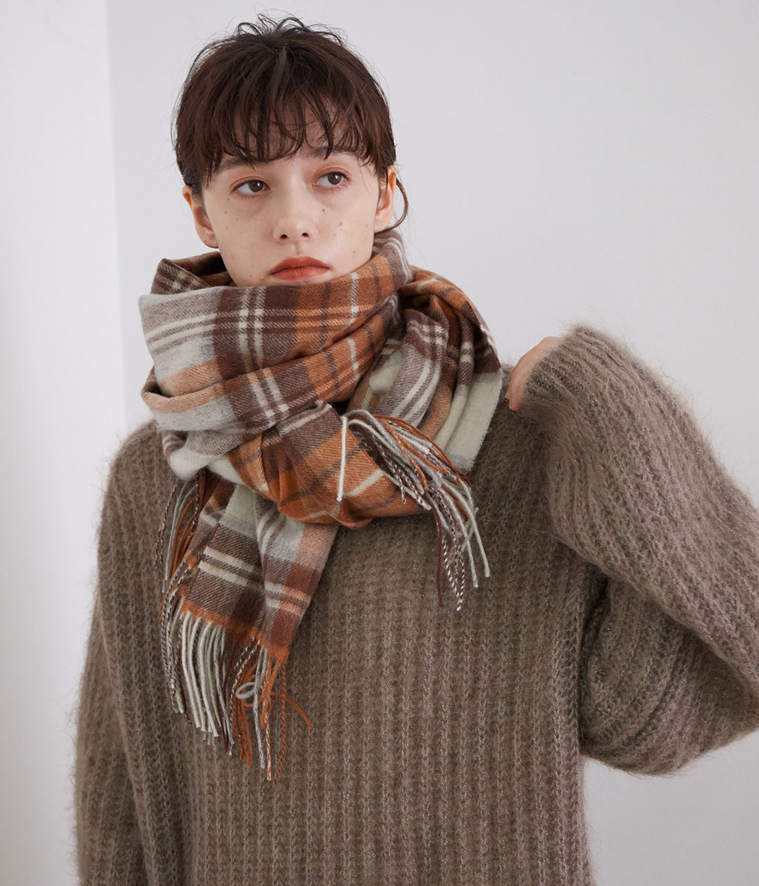 大口注文・法人のお問い合わせはこちらウール100%で、冬の寒さから守ってくれる暖かなストール。 使いやすいブラウンとネイビーの色味に加えて、サックスブルーのチェックの3色展開。 長さがたっぷりあるので、肩から羽織ったり、首にぐるぐる巻いたりと、色々なアレンジが楽しめます。 季節感がぐっと高まるチェック柄ストールは、冬のスタイリングに取り入れたいアイテムです。 ※画像の商品はサンプルです。 実際の商品と仕様、加工、サイズが若干異なる場合がございます。 ※室外で撮影している画像は、光の影響で色味が若干異なって見える場合がございます。