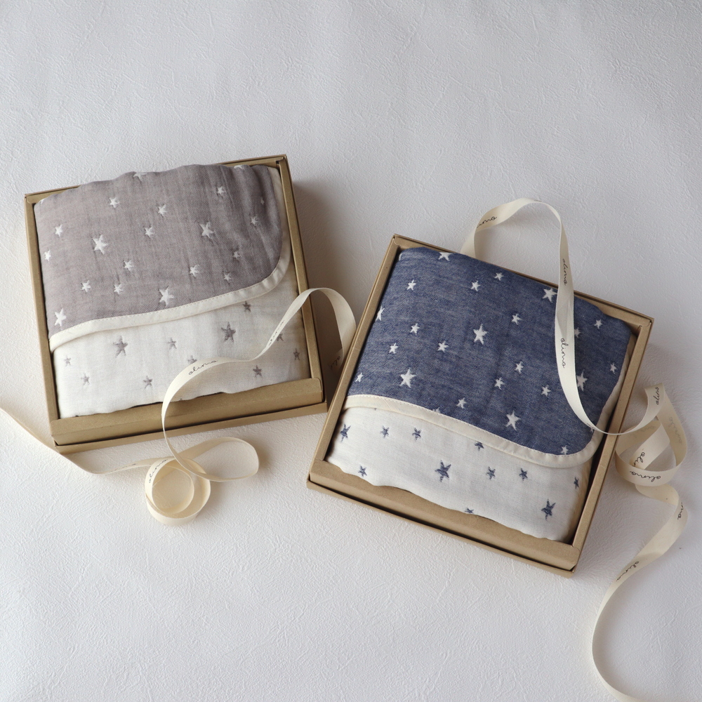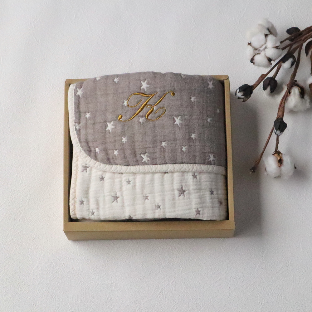 【泉州南部織】の6重ガーゼマルチケットはご自宅用にはもちろん、贈り物としてもおすすめです。 『名入れ』もできますので出産祝いやお祝いのギフトにいかがでしょうか。