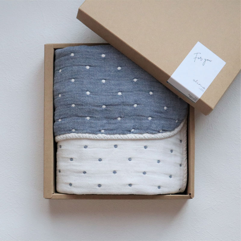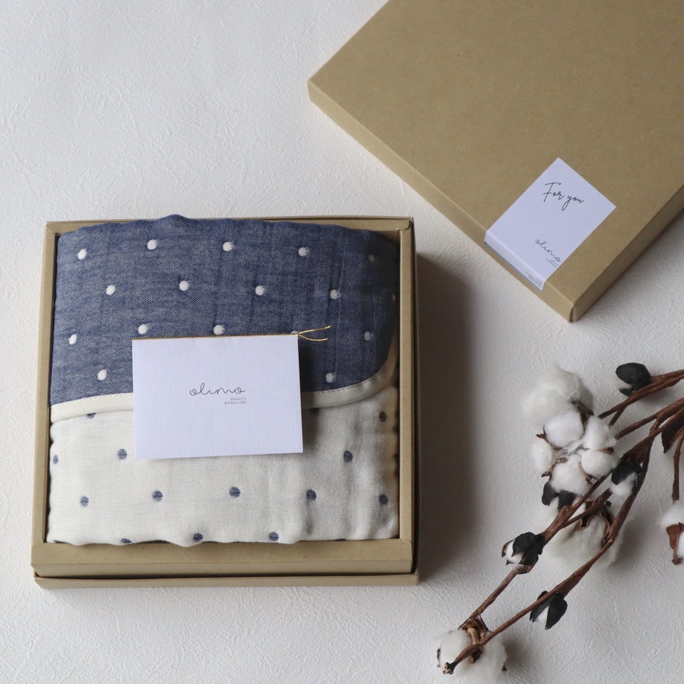 【泉州南部織】の6重ガーゼマルチケットはご自宅用にはもちろん、贈り物としてもおすすめです。 『名入れ』もできますので出産祝いやお祝いのギフトにいかがでしょうか。