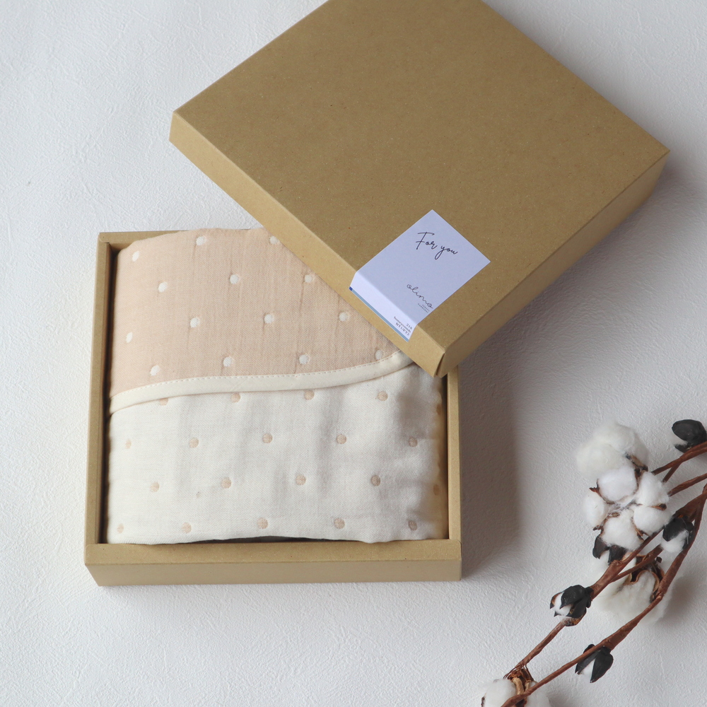 お子様はケットとして、大人はひざかけとして、年齢に関係なく1枚あると便利なアイテムです。 コットン100%で静電気が起こりにくく、自然素材のぬくもりを感じられるギフト。 オリジナルのメッセージカードもご用意しております。