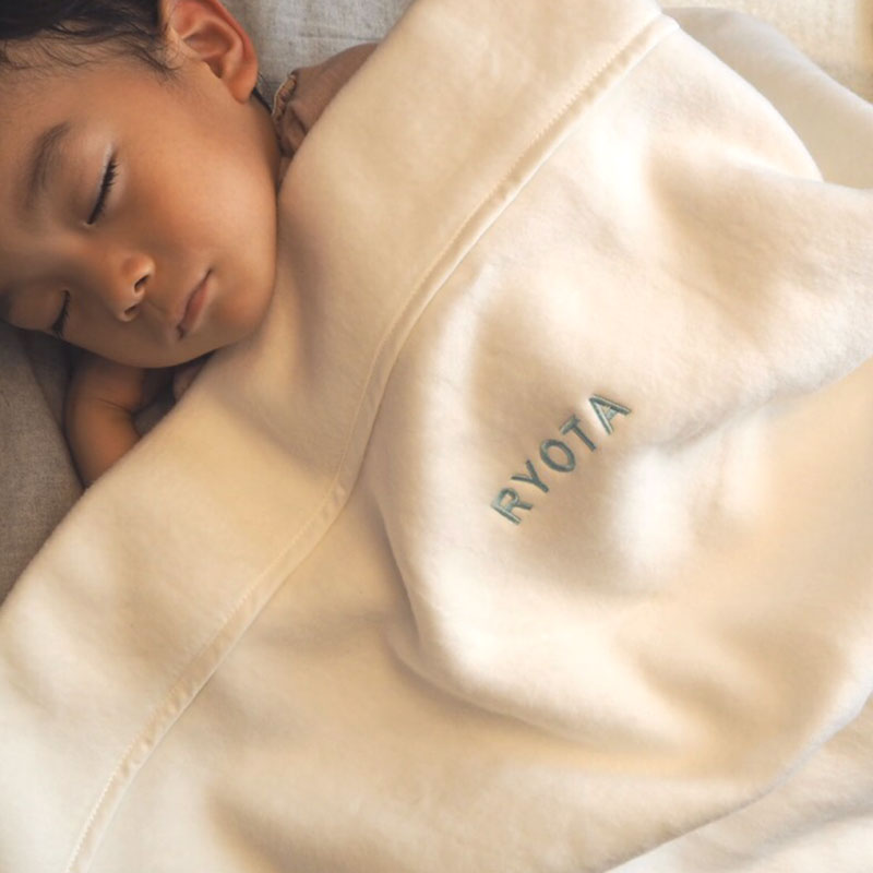 天然素材であるコットンを100%使用したベビー綿毛布です。ふっくらと柔らかく、吸湿性・保温性に優れております。ホワイトの綿毛布にお好みのカラーでお名前を刺繍する特別感のあるギフトとなります。ベビーからキッズまで長い期間ご使用頂けるサイズです。