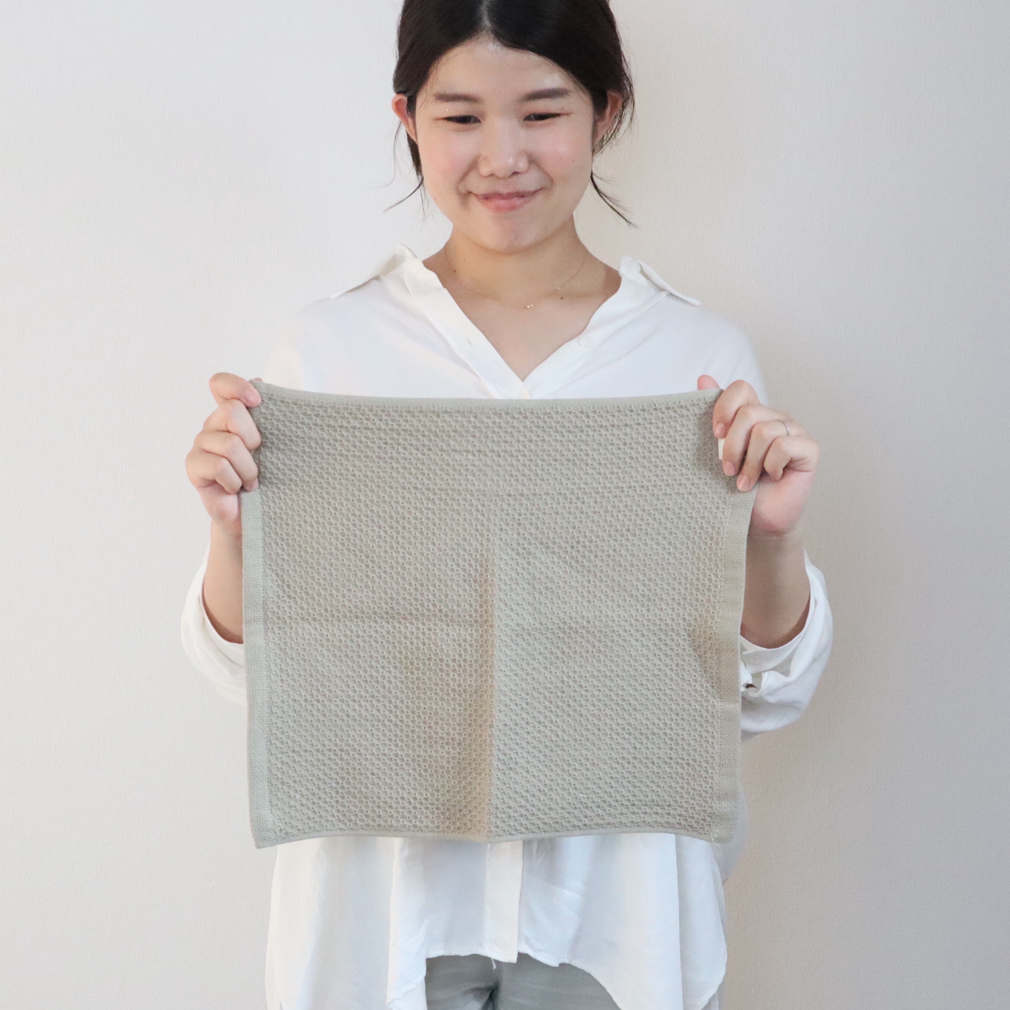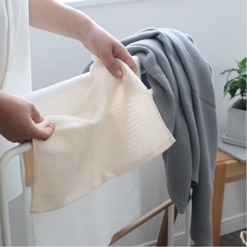 泉州南部織の代表的な織方であるハニカム織は、蜂の巣のような六角形に見える凸凹がある形状のタオルです。 中でもソフトハニカムシリーズは、裏地に粗めのガーゼを織り合わせることで、薄くもなく厚すぎることもない柔らかい生地となり、水分をよく吸い、早く乾きます。 天然素材であるコットンを100%使用した質の高いガーゼ生地は、軽くて、柔らかな肌触りが特徴です。 吸水性だけでなく、保温性・吸湿性にも優れており、その使い勝手の良さが人気の素材です。 肌へのダメージが少ないソフトハニカム織タオルは、敏感肌の方や肌の柔らかいお子様にも安心してご使用いただけます。