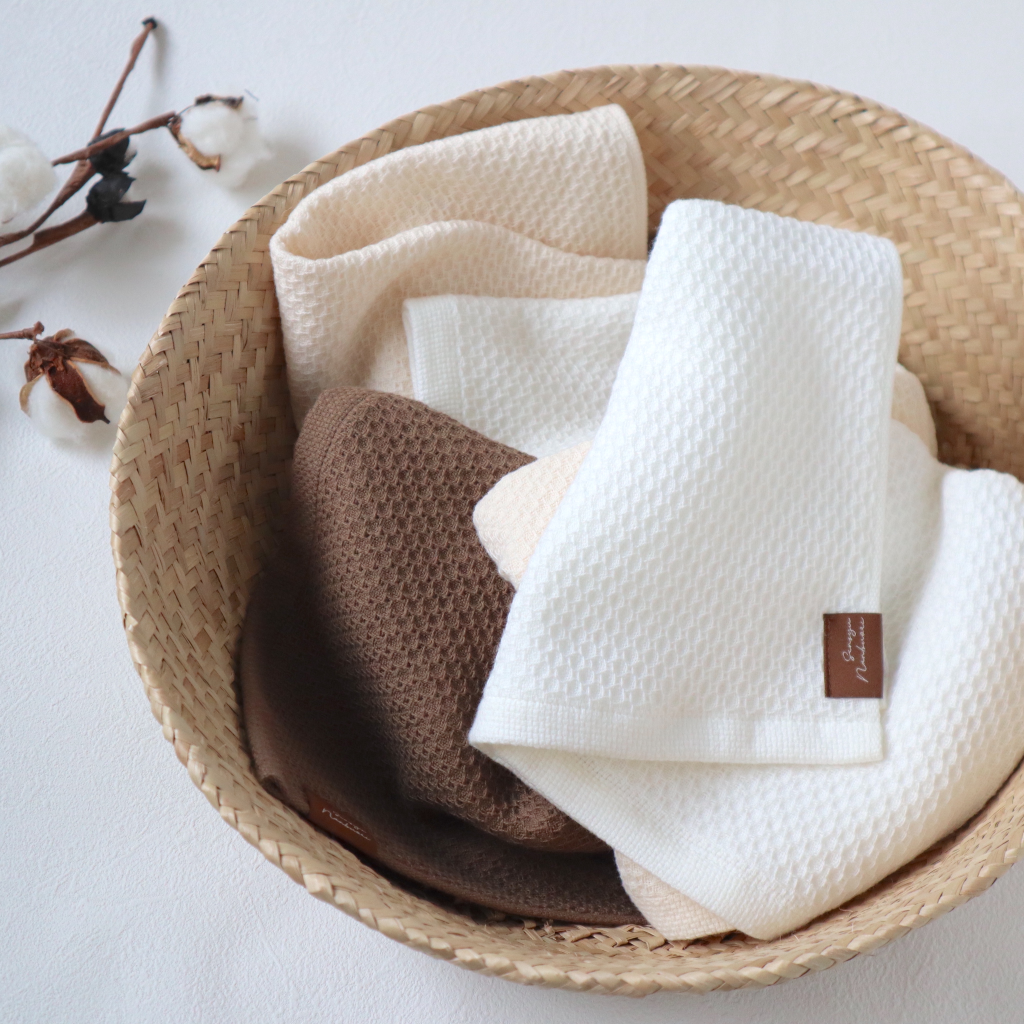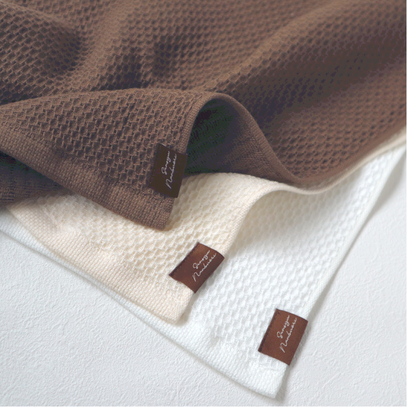 ソフトハニカム織は、裏地にガーゼが織り合わせられた特別感のあるタオルです。吸水性があり、さらりとした風合いが特徴です。裏地に粗めのガーゼを織り合わせたことにより、肌に優しく、ふんわりとした肌触りが感じることができます。大切な人へのギフトに最適です。