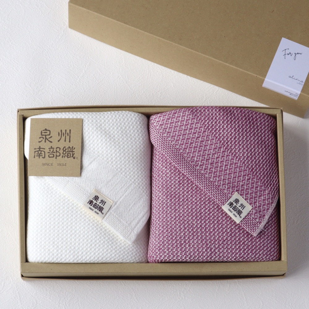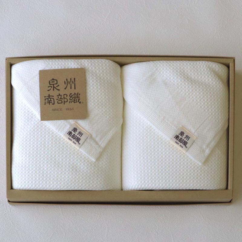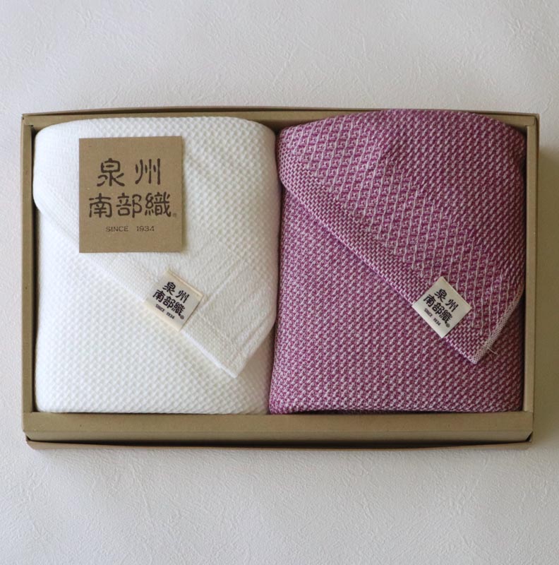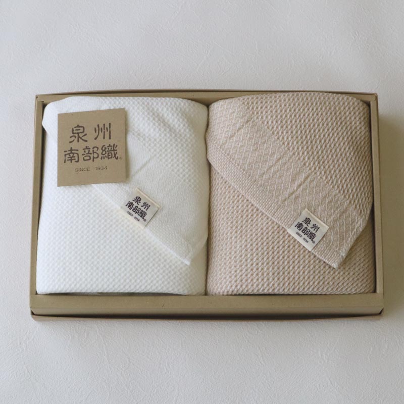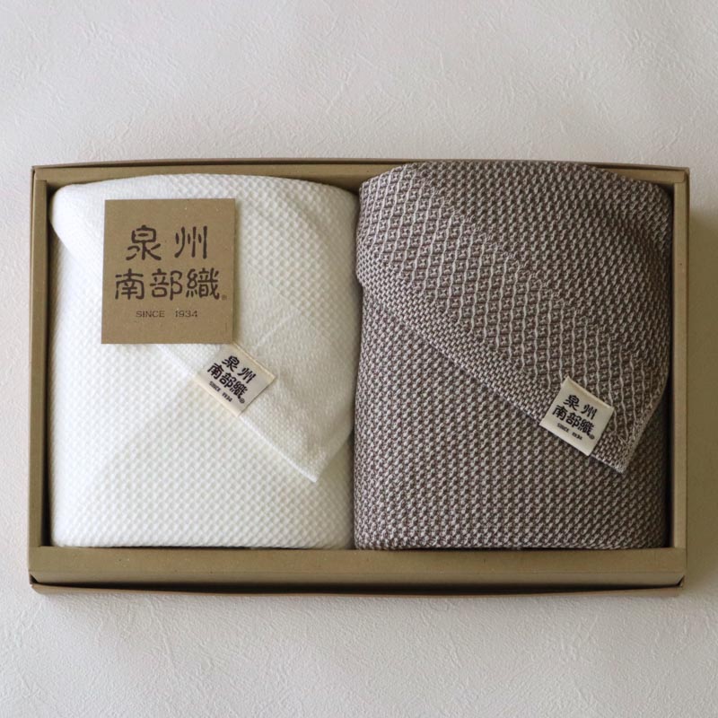 日本タオル発祥の地と言われている“泉州”はタオルの名産地。 泉州タオル特徴の「後晒し」製法を古くより守ってきました。 “泉州南部織”は、後晒しの製法と独自の織技術を掛け合わせた当店オリジナルブランドです。 後晒しにより製造過程でついた不純物を取り除くため、お手元に届いた時から続く肌に優しい柔らかさと吸水性が魅力です。