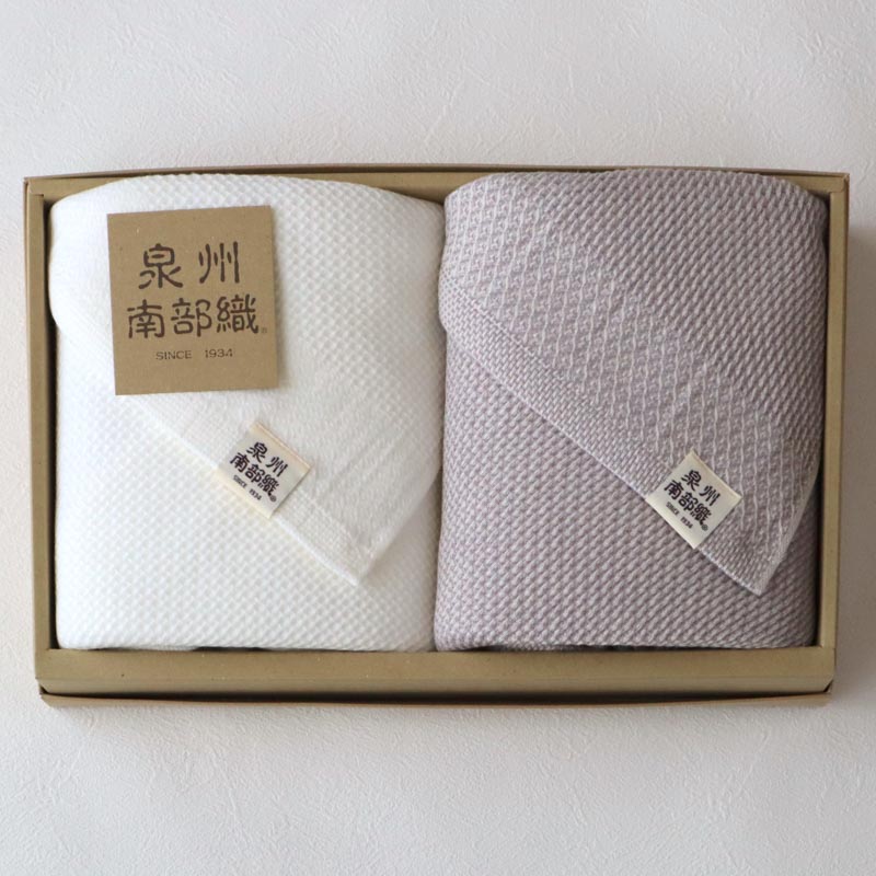大口注文・法人のお問い合わせはこちら泉州南部織といえば「ハニカム織」と言えるほど代名詞となっているタオルです。 蜂の巣のような六角形の凸凹が薄手の生地でも驚きの吸水力を発揮します。 ハニカム型の凸凹があることにより、水分に触れる面積が増え、吸水性を高めています。 また、肌に触れる面積は少なくなるため、使用中にベトっとしたまとわりつく嫌な感じはなく、サラリとした風合いが魅力です。 使えば使うほど織の凸凹が深くなり、弾力が出てくるので見た目ほどの薄さを感じないことに驚きます。 美しい織のデザインが珍しく、つい周りの人に勧めたくなるのでギフトとして人気の商品です。 ハニカム織タオルは、その使いやすさから1度使えば手放せなくなります。すぐに乾き、サラリとした風合いはハニカム織タオルの魅力です。 薄手のタオルですが、吸水性や見た目・デザインに一切の妥協はしていません。