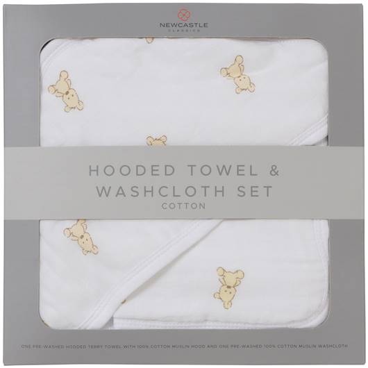 アメリカからお届けするハイブランド【Newcastle Classics(ニューキャッスルクラシックス)】のフードタオルとウォッシュクロスのセットです。