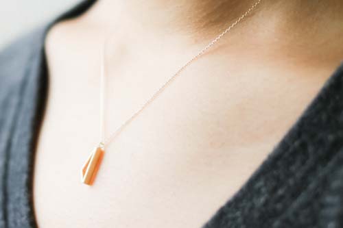 大口注文・法人のお問い合わせはこちら「トライアングルネックレス」は、三角形のペンダントが特徴的。マット加工を施された三角形のトップは中が空間になっており、他にはない抜け感のあるネックレスです。また、チェーンは光沢がある素材なのでそのコントラストもおしゃれ◎