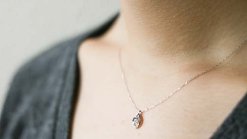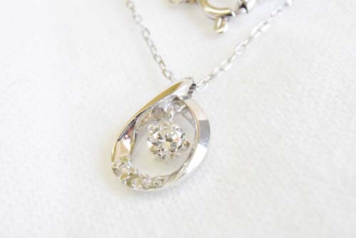 シンプルなデザインのダイヤモンドネックレス。綺麗なしずく型の中央にダイヤモンドが輝き、どんなファッションにもあうデザインです。丸みを抑えたやや縦長のシルエットでクールな印象に仕上がります。自分へのご褒美、大切な方へのプレゼントにオススメの商品です◎