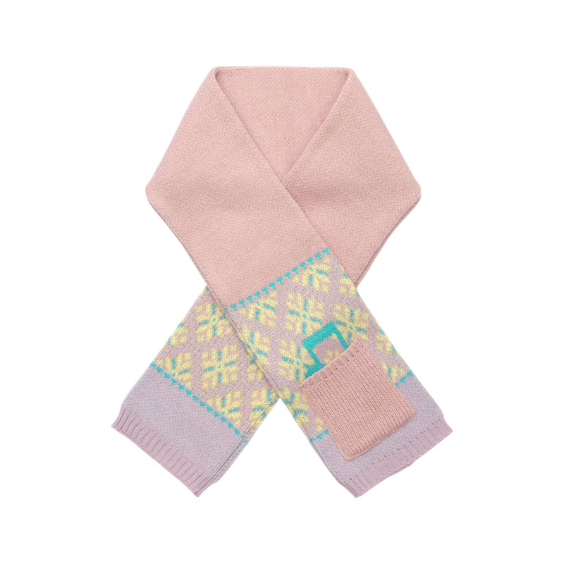 様々な模様が編み込まれた温かみ溢れるamabroの表現を加えたベビー用マフラーです。愛らしいポケットががポイント。おそろいのミトンを合わせたコーディネートもオススメです。お子様のお誕生日やクリスマスのギフトにもピッタリのアイテムです。