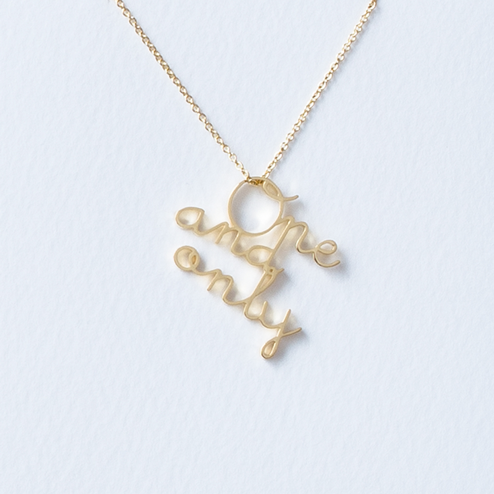 <One and only>ネックレス メッセージ:好きも嫌いも抱きしめて 商品名:One and only ネックレス ヨミ:ワンアンドオンリィ イミ:最愛の人、唯一無二の コメント:かけがえのない無い大切な人だという事に今やっと気がついた。