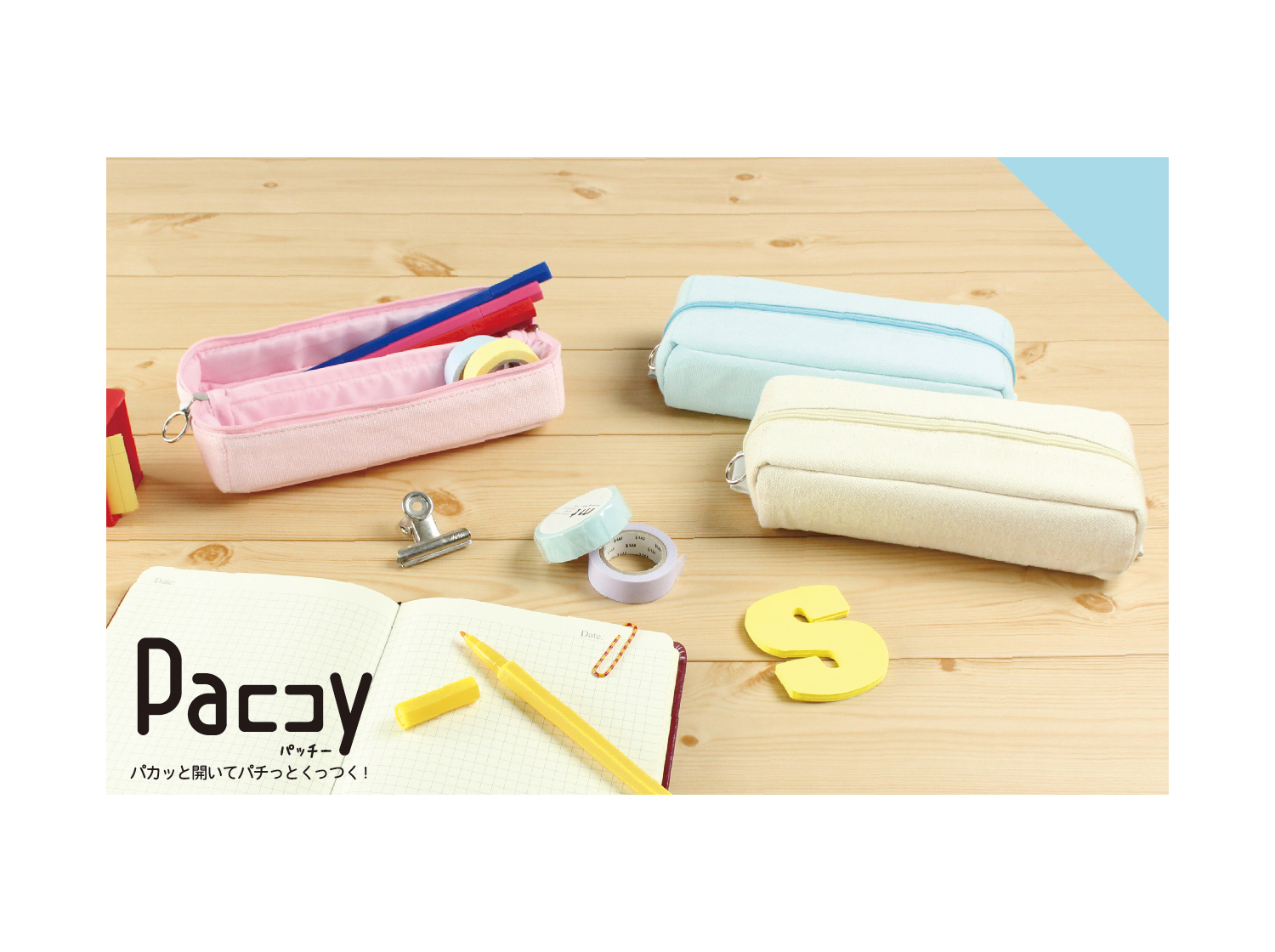 大きくパカっと開いて、内臓のマグネットでパチッとくっつけるとトレー状になる二つ折りのペンケース。入れている文具が見やすく、取り出しやすい設計です。ファスナーを閉じるとコンパクトに。文具のほかに、メイク道具などの収納にもぴったりです。