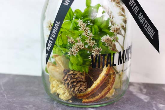 可愛いボトルにドライハーブやドライフルーツを贅沢に閉じこめ、植物本来の持つ素材の香りが五感を癒してくれます。
