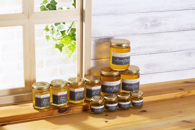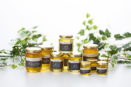 シンプルでスタイリッシュに仕上げております。 従来の蜂蜜のかわいらしいイメージより、高品質、上質になります。 キッチンや食卓に置いておくだけでも、映えるようなパッケージに仕上げております。 また、花の種類でロゴ下の色合いを変えており、今後の商品ラインナップにより、陳列した際に綺麗な色どりも少しは楽しめると思います。