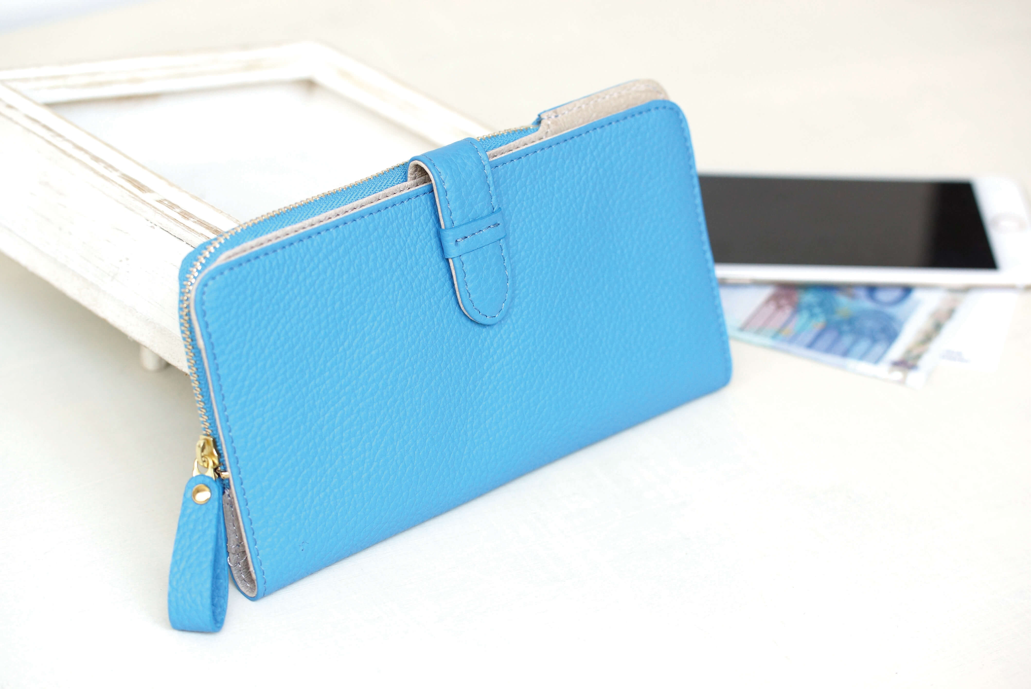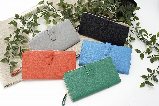 大口注文・法人のお問い合わせはこちらL字ファスナー付きの長財布です。 ベルトホックを開けるとカードが両サイドに14枚収納できます。 男性の方にも女性の方にもおすすめなシンプル無地のデザインも魅力です。