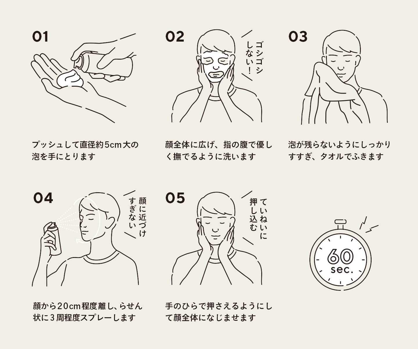 メンズコスメブランド【LOGIC】から、60秒で完了する泡洗顔とミスト化粧水のセットをお届け。忙しく働く人の、朝と夜のスキンケアを無理なく習慣化できるように、圧倒的な時間短縮にこだわりました。スキンケアの“めんどうくさい”を解消した【LOGIC】で、新しいスキンケア体験を。