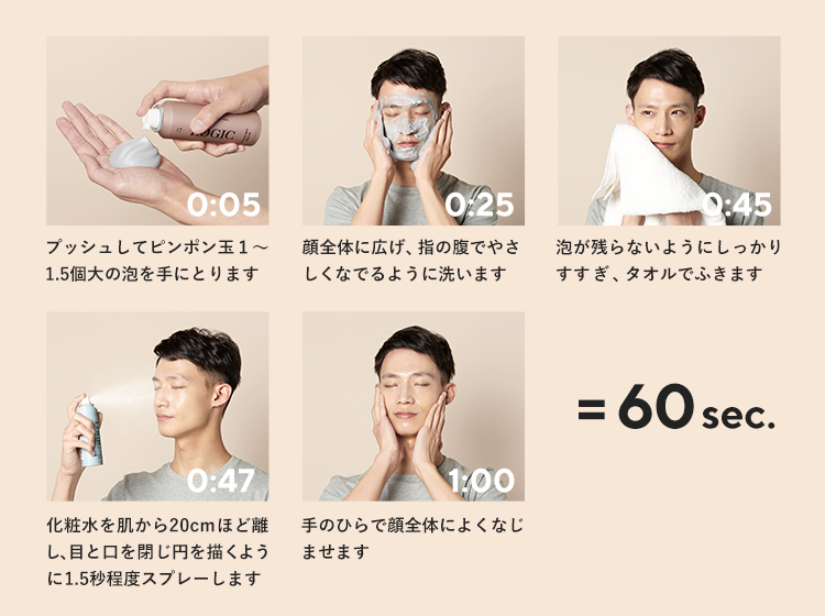 メンズコスメブランド【LOGIC】から60秒で完了する泡洗顔をお届け。忙しく働く人の、朝と夜のスキンケアを無理なく習慣化できるように、圧倒的な時間短縮にこだわりました。スキンケアの“めんどうくさい”を解消した【LOGIC】で、新しいスキンケア体験を。