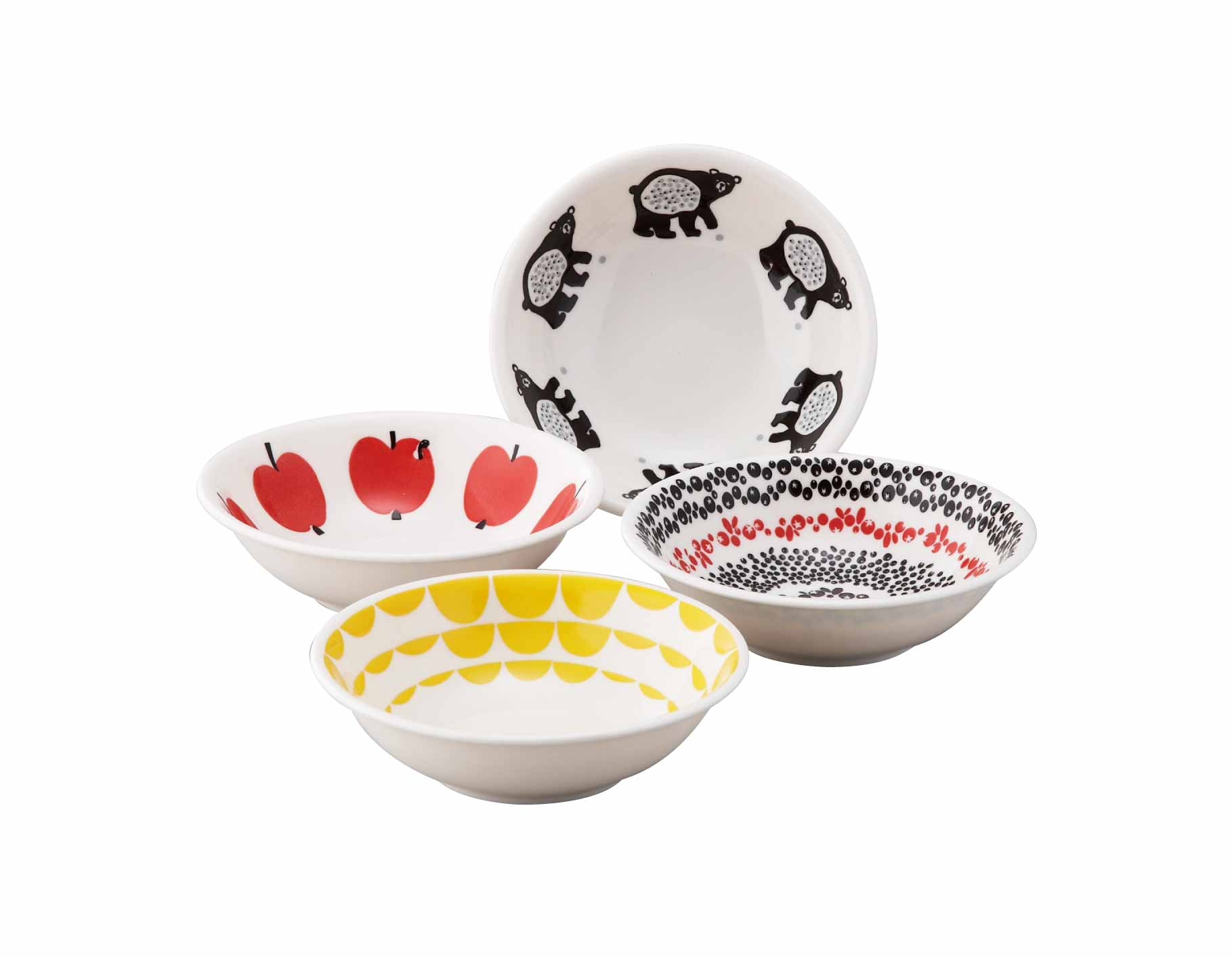 4枚それぞれに鮮やかなデザインが描かれています。毎日気分によって使い分けたくなるボウルです。