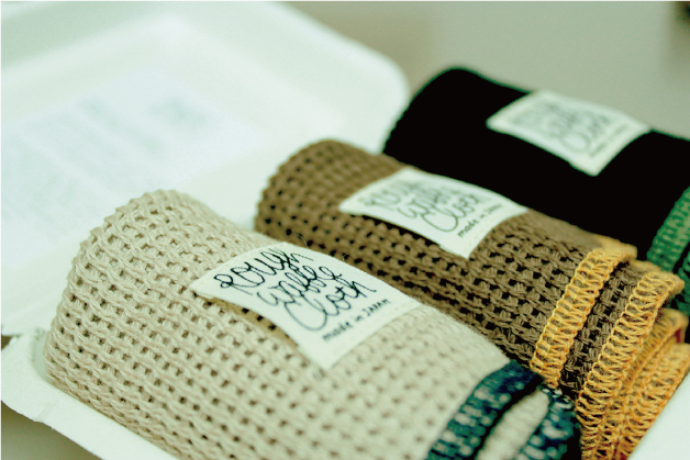 ニット製品のため、織物とは異なり何枚かにたたんで手の中に収めた時の弾力が非常に使いやすいです。 織物と比較すると吸水量が多く、たくさんの食器をふくことができ、また生地目が粗いので乾きが早いです。食器だけでなく、テーブルを拭いたりするのにも適しています。