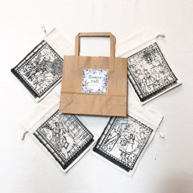 イラストレーターKeisukeが描くFairy Taleのプリントの巾着に入っています。