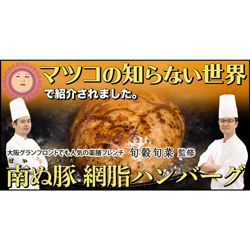 大口注文・法人のお問い合わせはこちら石垣島のパイナップルを食べて育った希少なアグー豚「南ぬ豚(ぱいぬぶた)」を使用したハンバーグ。 網脂で包み、肉汁や旨みを中に閉じ込めてつくりました。