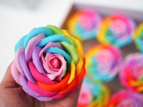 レインボーローズが「爽やかなせっけんの香りを放つ」フレグランス♡カラフルで華やかな9輪のバラが箱に入ったギフト。
