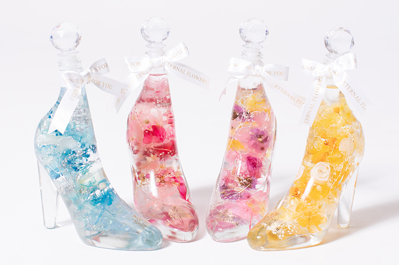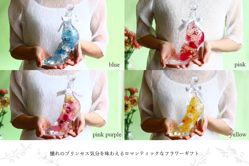 大口注文・法人のお問い合わせはこちらガラスの靴の形をした愛らしいボトル 中には色とりどりの花と1輪のバラが閉じ込められています 箱を開けた瞬間からプリンセス気分を味わえる 女性にとって夢のような贈り物になるはずです。 閉じ込められた1輪のバラにはそれぞれ異なる花言葉が込められています。 バラの花言葉に大切な想いを託せば特別なギフトに どんなシーンでもぴったりのフラワーギフトを見つけられます。