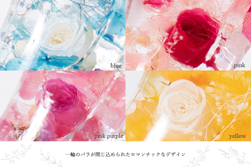 青色 : 夢に向かって頑張る人へ 「夢かなう」「奇跡」「神の祝福」 ピンク色 : 恋人との記念日や感謝の贈り物として 「気品」「感謝」「愛の誓い」 紫色 : 尊敬する人へ 「気品」「尊敬」「誇り」 黄色 : 家族や友達へのギフトとして 「友情」「平和」「可憐」