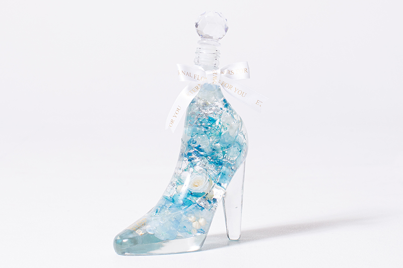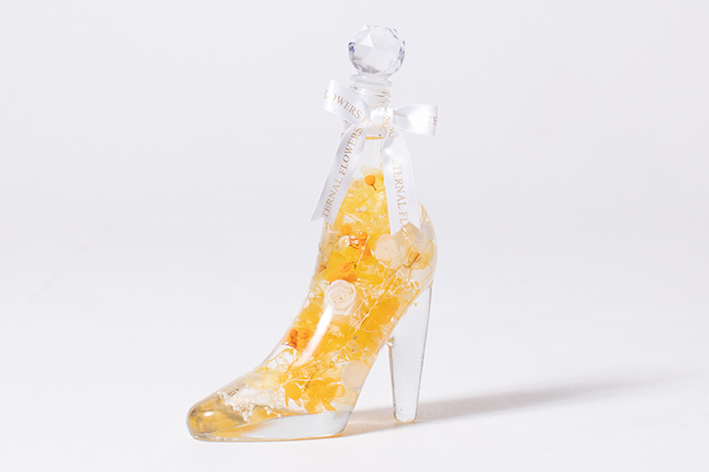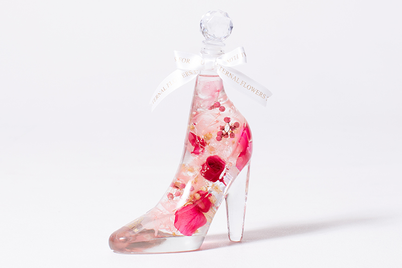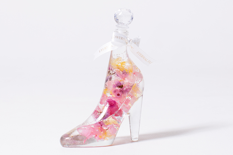 花や植物の一瞬の命を閉じ込めた 【FLOWERiUM®(フラワリウム)】が提供する、ガラスの靴のフラワリウムです。