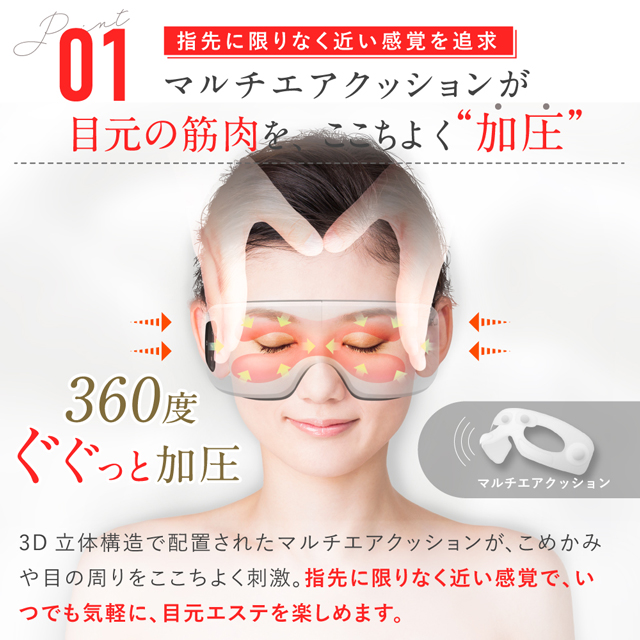 NIPLUXだけの気圧按摩技術を搭載。指先に限りなく近い感触で優しく目元をもみほぐします。