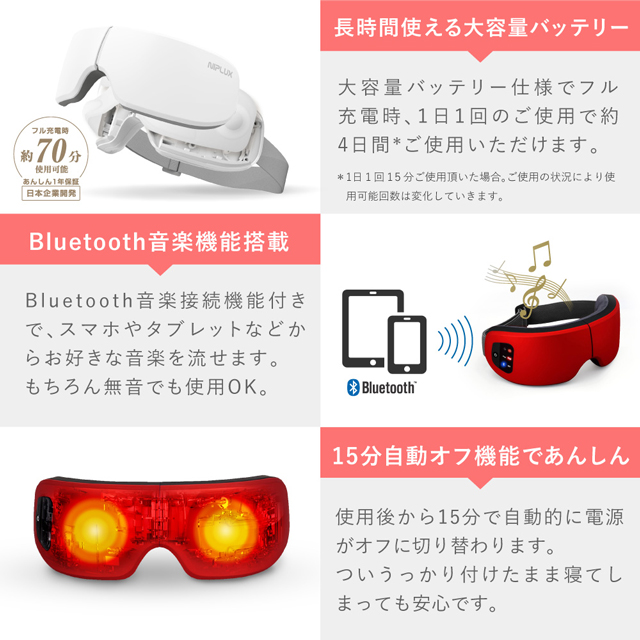 「NIPLUX」を検索しスマートフォンと接続すると、アイマスクの機能を実行しながら音楽を楽しめます。iOS、Androidどちらでも対応可能です。