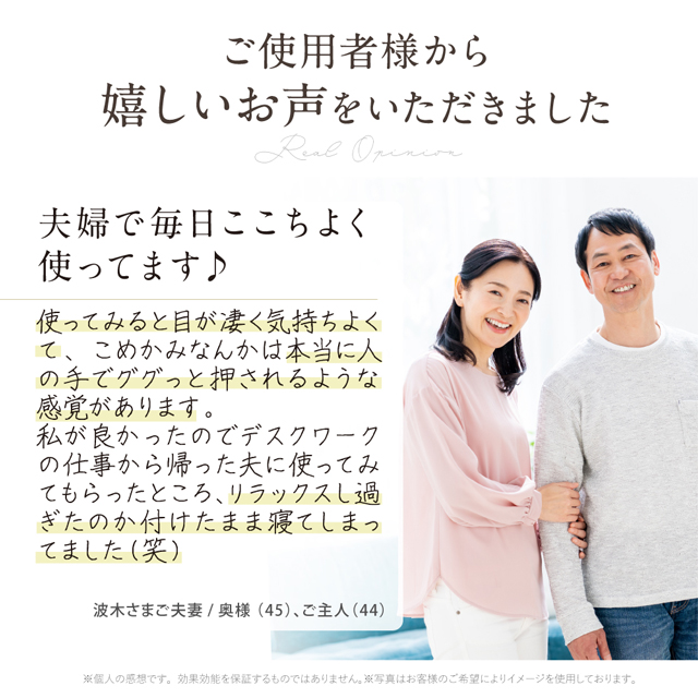 目元をじんわり温め、リラックス効果のあるこの商品は男女問わずおすすめです。 毎日頑張っているご家族や大切な人へのプレゼントにぴったり。 また、自分へのご褒美にも最適です。