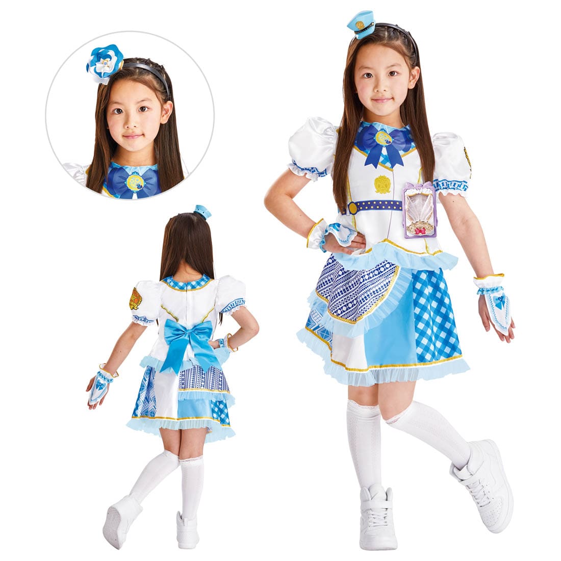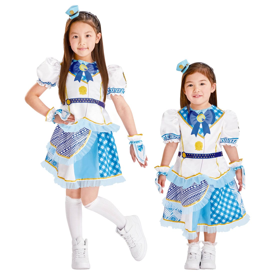 大口注文・法人のお問い合わせはこちらラブパトブルー(コハナ)の変身&モードチェンジが楽しめるコスチュームセットになります! トップス、スカート、アームカバーに帽子のカチューシャも付属しているので、このセットがあればすぐにラブパトブルー「コハナ」になりきれます! そしてさらにモードチェンジ用カチューシャパーツ(バラモード)も付属!バラモードもかわいくキメちゃおう! ※メンバーにあわせたカラーと形状のコスチュームセットになっています