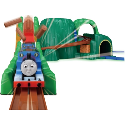 トーマスがジェットコースターみたいにかけおりる”きかんしゃトーマス どきどきマウンテンセット”をお届け。山のまわりをぐるぐるのぼっていき、すごいスピードで山を駆け下ります!ヘリポートにとまるハロルドのイラストや、滝の情景でトーマスの世界を再現してます!