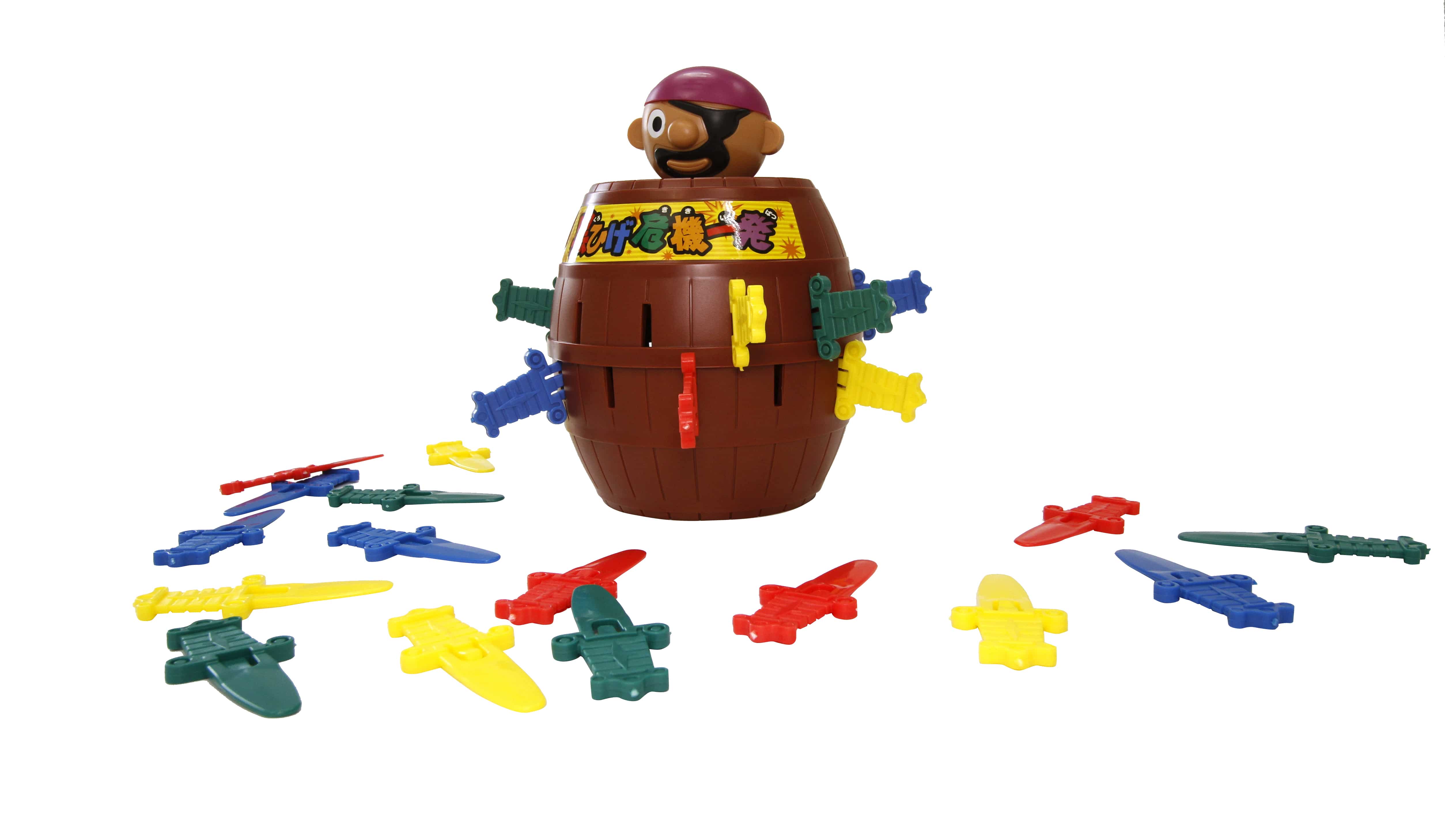 1975年の発売以来、ロングセールスを続けている「黒ひげ危機一発」。遊び方は単純明快です。飛び出した海賊を戻すときに、刺していた剣をすべて抜くことと、戻した海賊をくるくる回すことを忘れなければOK。家族の団らん、パーティー、どんな場面でも大活躍のおもちゃです。