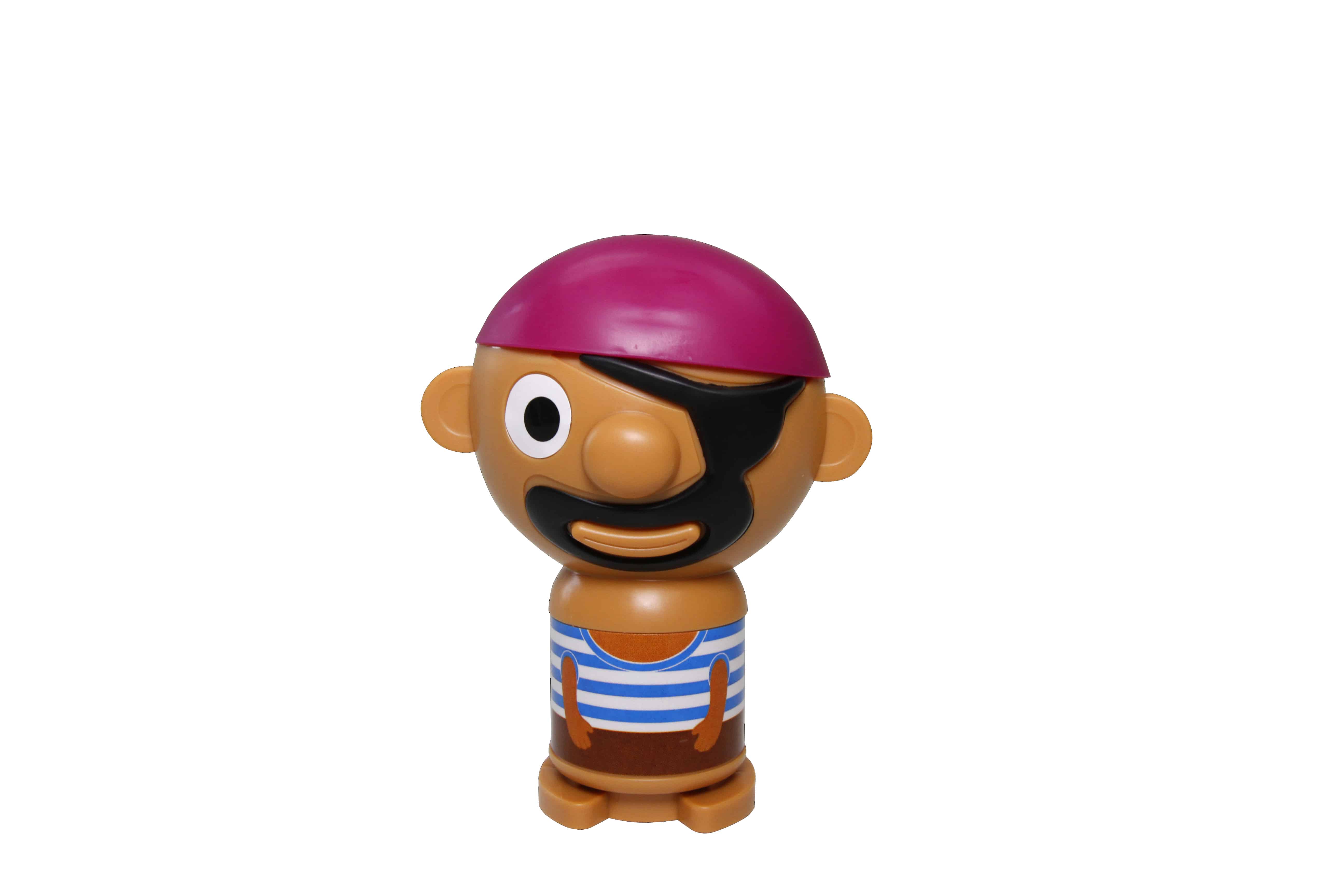 樽の真ん中にセットされる「黒ヒゲくん」。 どちらかというと子分っぽい顔立ちと格好だが、れっきとした大海賊…のはずである。 レトロ感のある「ゆるキャラ」のような感じが、平成生まれの子供には新鮮なようです。