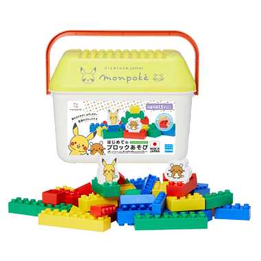 大口注文・法人のお問い合わせはこちら「ポケモン」初の公式ベビーブランド、 親子で楽しめるハイセンスで高品質な「monpoke(モンポケ)」。 知育要素×キャラクターコンテンツに愛着を持つ1.5歳前後を対象とし、 様々な可能性と能力を育む要素を盛り込んでいます。 ダイヤブロックジュニアはお子さまの手でも組み立てやすく外しやすい、 国産のブロックです。 まだ握力の弱いお子様でも遊びやすいよう、2重バネ構造を採用し、 組みやすく外しやすいという難しい条件をクリアしています。 はじめてブロック遊びをするお子様のために、 基本カラーで揃えた大きなブロック50ピース入り。 人気のピカチュウとデデンネのフィギュアが2体入っています。 モンポケカラーのバケツに収納でき、お片付けの際も便利なセットです。 お子さまと一緒にかわいいモンポケのブロックで おうち時間も楽しく遊んでみてはいかがでしょうか?
