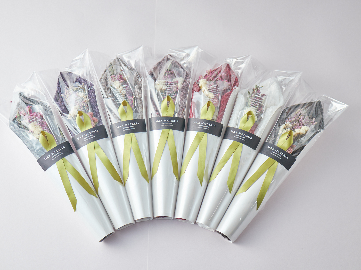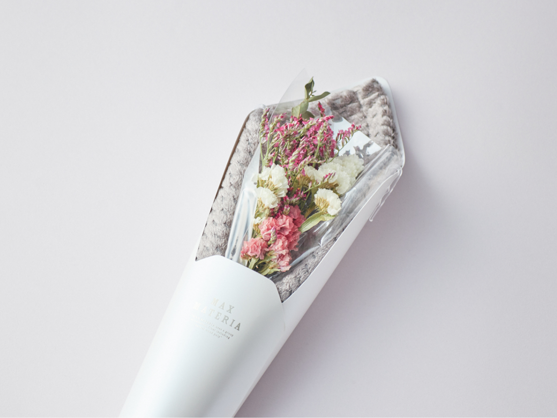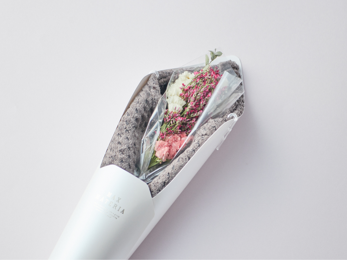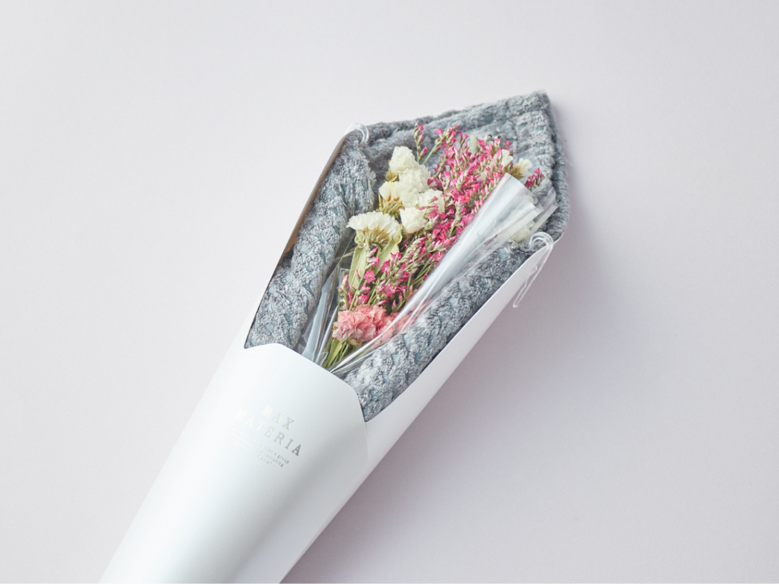 大口注文・法人のお問い合わせはこちら木から生まれた特別な高級素材を使用した、MAXMATERIA(マックスマテリア)の花束フェイスタオルです。 天然のお花を使用したドライフラワーがタオルに包まれており、見た目が華やかになる花束のようなデザイン。 お誕生日や結婚祝い、出産祝いなど幅広いシーンにぴったりなギフトです。